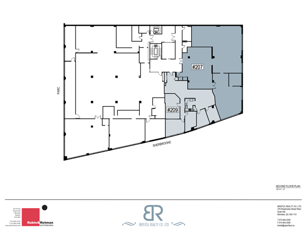 - Stratégiquement situé au cœur du centre-ville à l’intersection nord-est de la rue Sherbrooke ouest et de l’avenue du Parc.